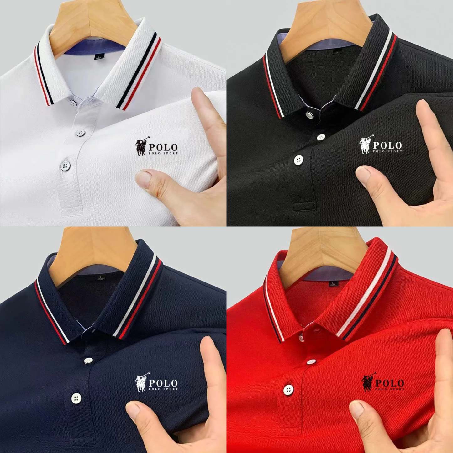 Men's fashionable solid color short sleeved polo T-shirt (Pack of 4)